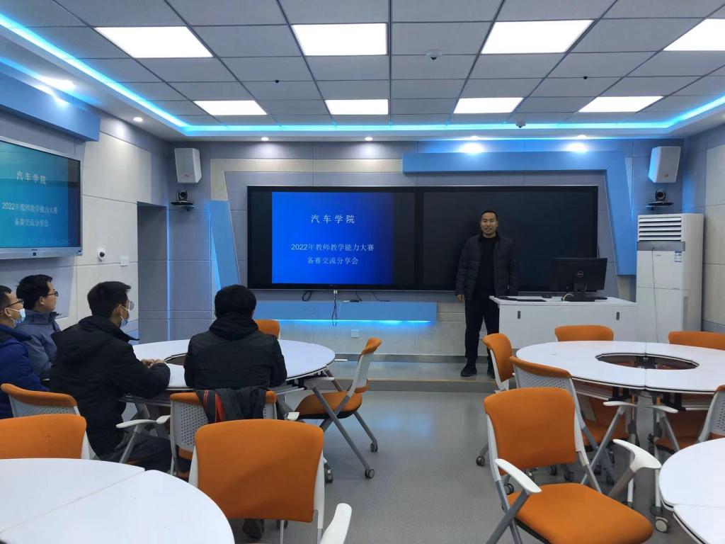 为进一步提高教师教学设计能力、实施能力及技术应用能力等综合素质,促进教师专业发展,做好汽车学院2022年教师教学能力比赛筹备工作,2022年2月28日下午17:00,汽车学院在天鹅湖校区智慧教室召开2022年教学能力大赛备赛交流分享会。汽车学院副院长田子欣、教学科和全体参赛老师参加了此次会议。